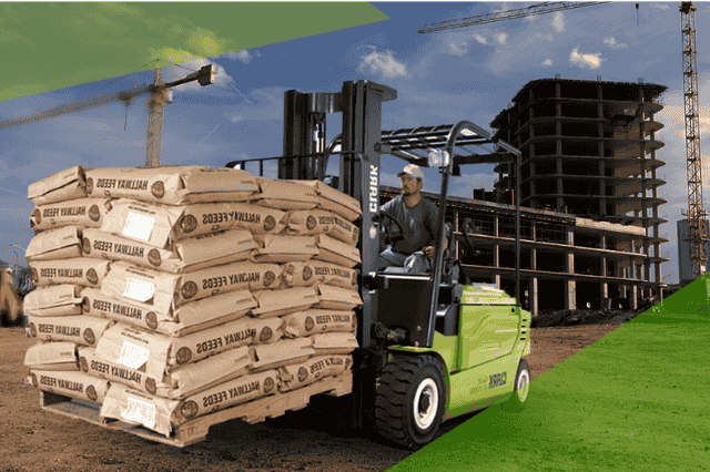 Agilidade no transporte de materiais pesados em canteiros de obra. As empilhadeiras são essenciais para movimentar blocos, pallets e estruturas.